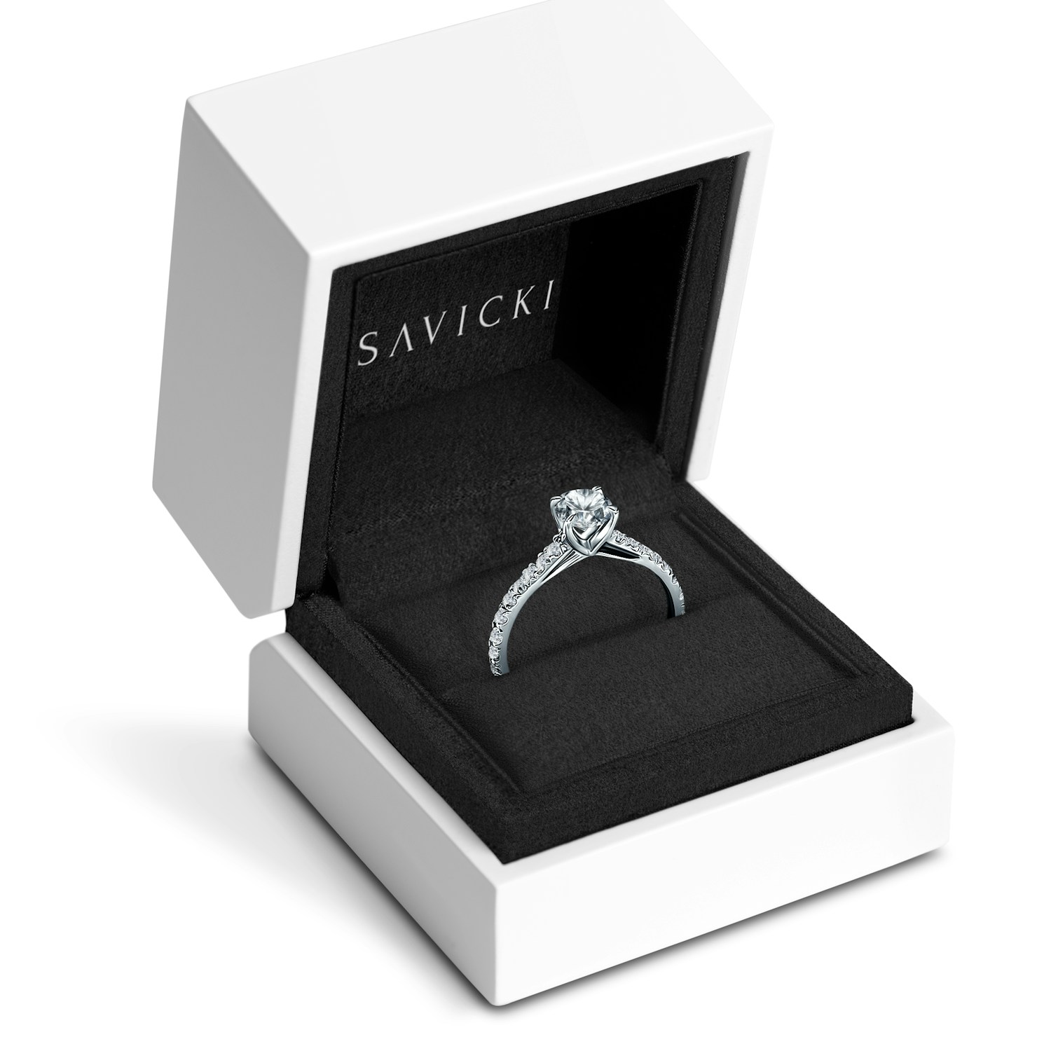 Every product ordered is carefully packaged to perfection and sent to you. Inside the parcel you will find: an elegant gift box, tailored to the size of the jewellery purchased, a gift pouch, a quality certificate, alifetime warranty (if applicable), a wedding ring warranty (if applicable), and a jewellery cleaning cloth – allthis comes in a stylish, secure SAVICKI box.