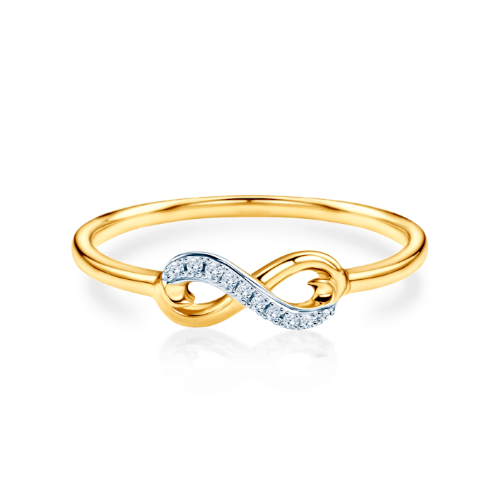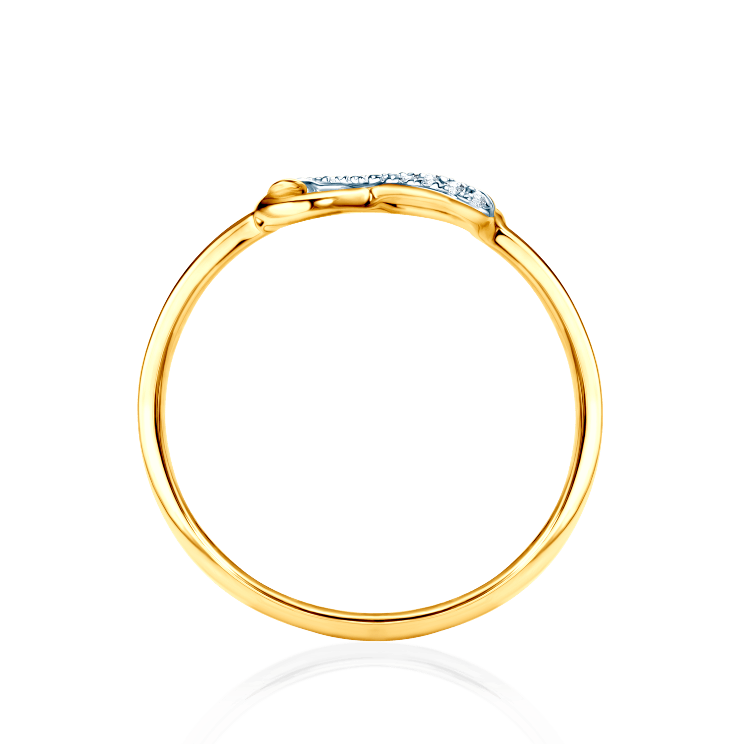 A Ring with 10 diamonds a total 0.03-carat brilliant cut diamonds, clarity SI2/H. The ring is made of 14-carat yellow and white gold (purity 0.585).